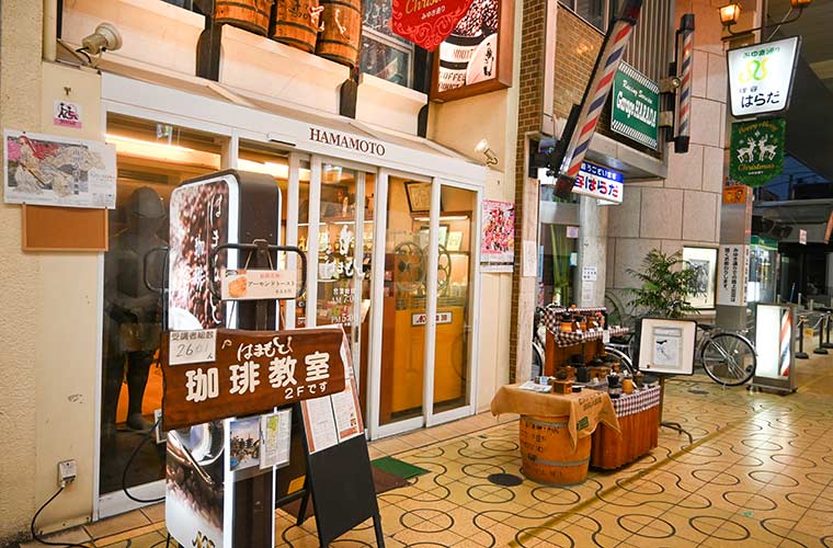 1975年創業、みゆき通りの商店街の一角にある「はまもとコーヒー」。10年以上通い続ける常連客だけでなく、その評判を聞きつけ国境を越えてはるばる海外から訪れるお客さんも多いお店です。長きにわたって愛される姫路民のソウルフード「アーモンドトースト」と香り高いコーヒーを求めて訪れては。