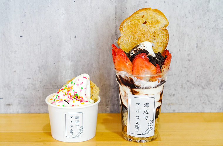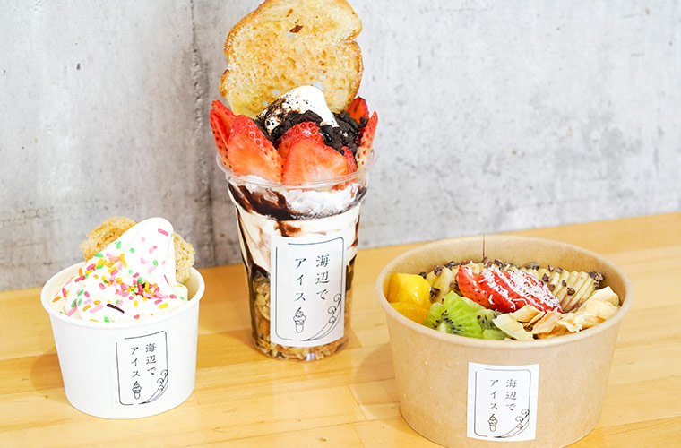 原料やメニューを見直し、進化を続ける「海辺でアイス」。今後はアイスをサンドした『バブルワッフル』の販売も予定しているそう。海辺で景色を楽しみながら味わうもよし、肌寒い日は暖かい店内でひんやりスイーツを食べる至福を味わうもよし。休日のおでかけやドライブの休憩がてら、立ち寄ってみてはいかが?