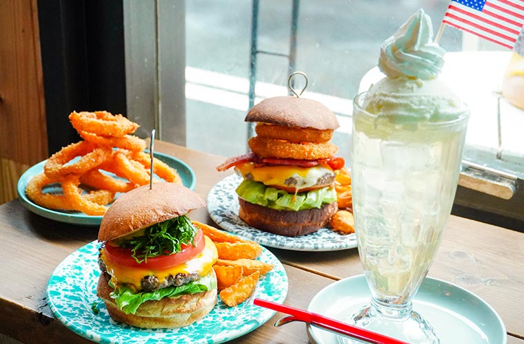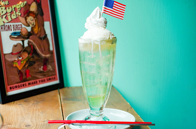 背の高い同店のハンバーガーにも負けない、ビッグサイズのドリンクメニューも要チェック。カルダモンやクローブ、シナモンなどのスパイスをブレンドした自家製レモンシロップで作るレモネードは、キリッとキレの良い味わいが人気です。さらに、シュワッと爽快なレモネードソーダの上に、バニラアイスとホイップをたっぷりのせたソーダフロートは、アメリカンなビジュアルにも心をくすぐられます。
