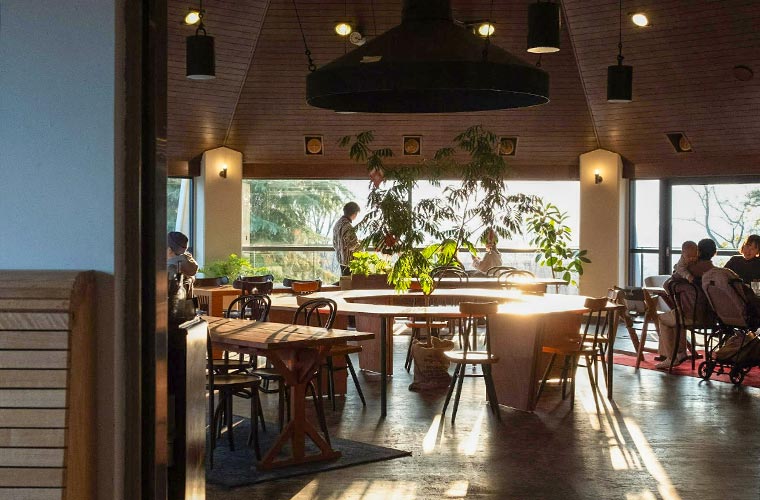 日岡山公園の小高い丘に位置する「ON THE HILL」は、カフェ、ベーカリー、コワーキングスペースが集まる複合施設。店内には大型犬も利用できる席や、見晴らしの良いテーブル席など、多彩なカフェスペースが用意されていて、どんなシーンでも利用しやすいのが魅力です。特に西陽が差し込む夕暮れどきの美しさはひとしお。ランチだけとは言わず、ゆっくりとカフェタイムまで過ごすのもおすすめです。