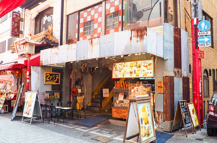 東側の入口にある「長安門(チョウアンモン)を通り抜けて1、2分ほどのところにある「芋栗パーラー ブリキトタン神戸本店」。サツマイモや栗のメニューを種類豊富に取り扱う専門店です。