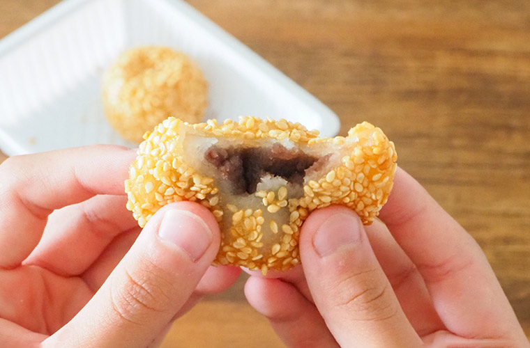 中華料理のスイーツといえば、「ごま団子」と思う人も多いのでは?おいしいごま団子を食べたい人は同店に決まり♪やわらかくてもちもちしたお餅を、カリっと香ばしいゴマで表面を覆っています。その中には甘さ控えめのこしあんが詰め込まれています。一口食べた瞬間からゴマの風味が広がり、お餅とこしあんがベストマッチ。
