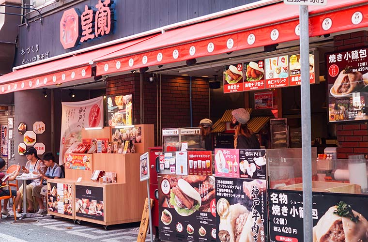 南京町の中心部に位置する「南京町広場」のところにある「老祥記(ろうしょうき)」。1915年(大正4年)創業から多くの地元民にも愛され、ひときわ長い行列をつくっている人気店です。来店は、比較的混雑の少ない10:30〜11:30、17:25〜18:30が狙い目!