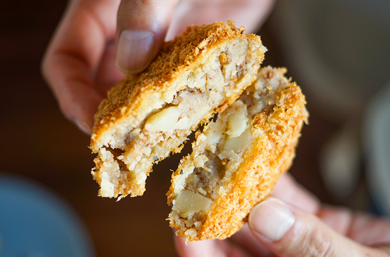 揚げたてアツアツのコロッケをひと口頬張れば、サクッ、ホクッ、ジューシーと、多彩な食感が重なり合い、思わず笑みがこぼれるはず♪シンプルでありながら奥深い、その味わいをぜひ堪能して。