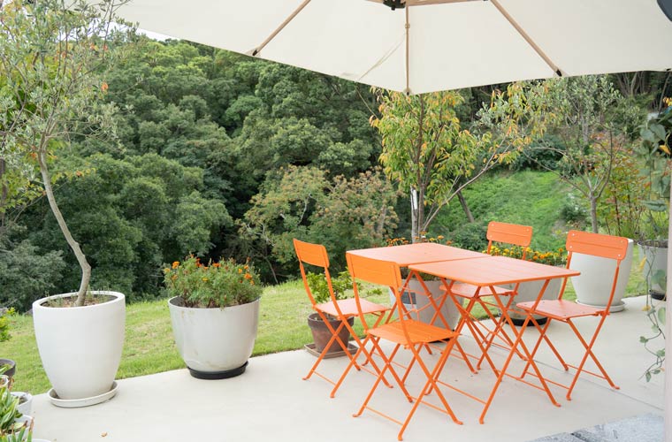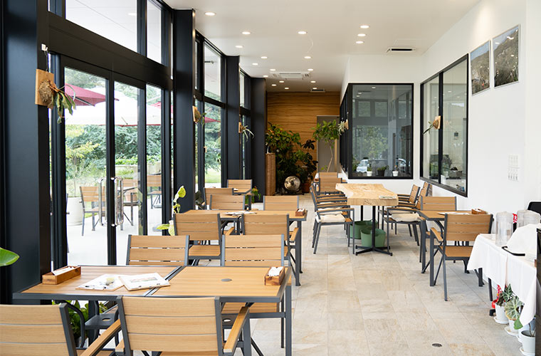 外には、ペットの同伴が可能なテラス席も。木々を抜ける風が心地よく、これからの秋の季節には最高のロケーションになるはず。