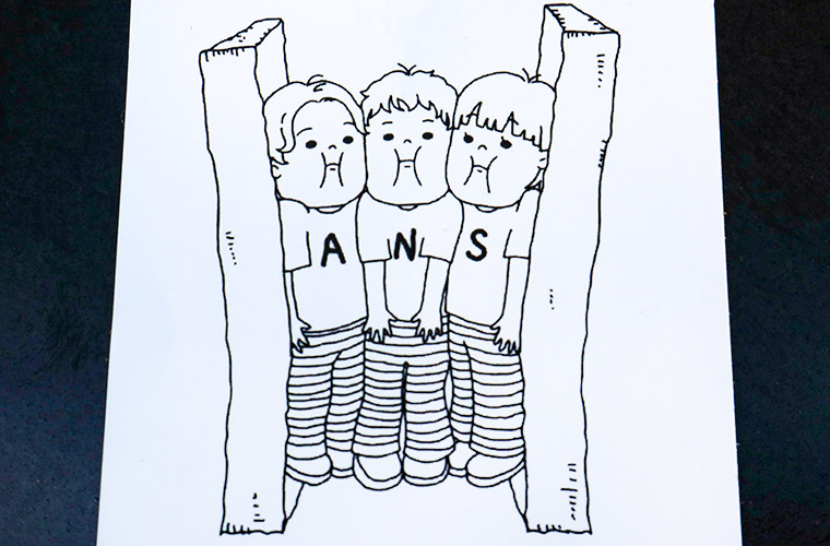 ロゴは店主の家族が3人の子どもたちをモデルに描いたイラスト。ギュギュッと詰まった姿が、具だくさんな同店のホットサンドを象徴しています。ブラ~ッと浮いた足やシュールな表情がたまらない愛らしさ。ちなみに、メニュー表も家族の手書きで、クールな外観と手作りで温かみのある雰囲気が調和しています。