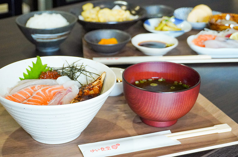 土日の朝はちょっぴり憧れる“日本の純和定食”を、昼は刺し身や海鮮丼を中心とした魚尽くしランチを、そして金・土曜日の夜は和食の枠にとらわれない創作料理を楽しめる「ゆい食堂」。「今日はおいしい魚を食べたい」「ちょっと心がほっとするご飯が食べたい」。そんな日には、ふらりとお立ち寄りあれ!