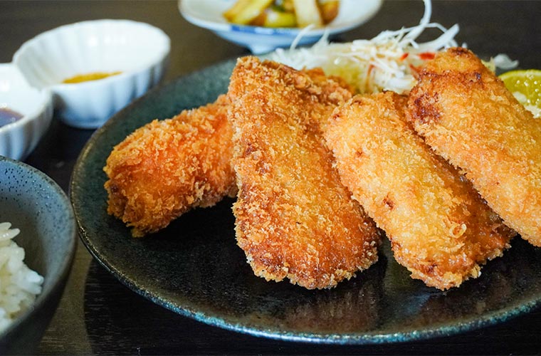 刺し身で食べられるほど新鮮なネタをフライにした『フライ定食』もあなどることなかれ。この厚み、この食感は、魚料理が自慢の同店だからこそ出せるものです。衣はサクッと軽やか、中はふっくらジューシーで、箸を入れた瞬間にじゅわっと魚のうま味があふれ出します。