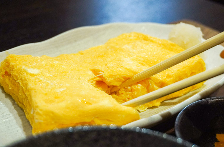 たつの市「中山養鶏場」でとれた地卵に、お店で丁寧に取ったかつお出汁をブレンドし、分厚く焼き上げた出汁巻き玉子は、じゅわっと出汁があふれ出るほどジューシー。シンプルだからこそ、職人の技とこだわりが光る一品です。
