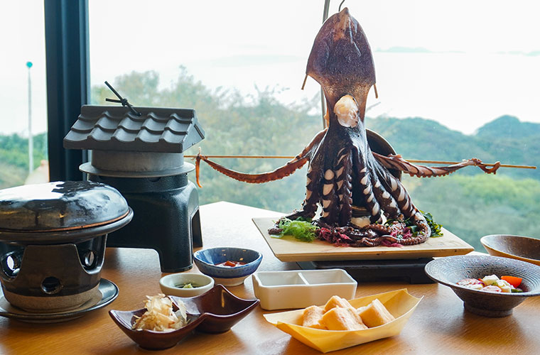 淡路島近海で水揚げされた真ダコを使ったメニューがSNSで一躍注目を集めています。中でも一度は味わってほしいのが、タコを丸ごと1杯味わい尽くすスペシャルメニュー『島のたこのしわら干し たこを喰らう!』です。2024年3月に登場してからわずか数か月にも関わらず、数あるメニューの人気No.1に駆け上がった、注目の一品です!