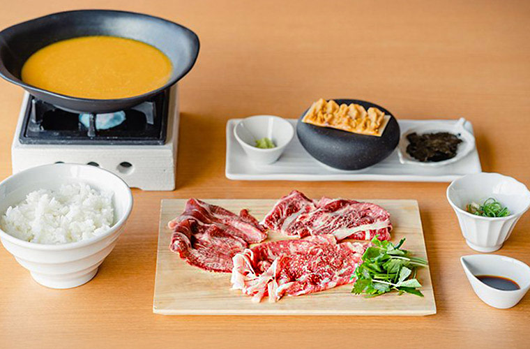 対するは、淡路牛を特製うにスープでいただく“うにしゃぶ”。ロース・赤身・ハネシタ、3種の厳選部位を食べ比べできる、極上の定食です。