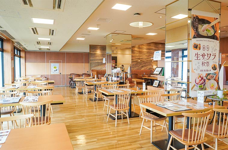 その2階にあるのが、「絶景レストラン うずの丘」。窓一面に広がる鳴門海峡と大鳴門橋を眺めながら、淡路島の自然の恵みをふんだんに使った料理を楽しめる“淡路島と共に暮らすレストラン”です。南側の壁一面がガラス張りになっており、店内は明るく開放的。穏やかな海風と陽光に包まれながら、非日常のひとときをゆったりと過ごせます。