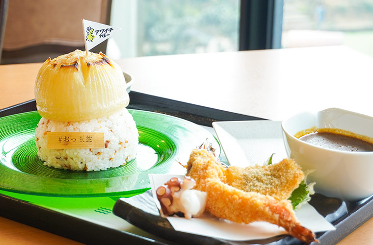 「うずの丘 大鳴門橋記念館」のシンボルといえば、巨大なタマネギオブジェ「おっ玉葱®︎」。そのインパクト抜群のオブジェをモチーフにしたカレーにも注目です!