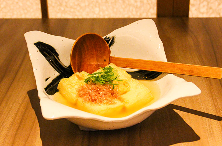 高砂の老舗豆腐店から仕入れる豆腐を使った『揚げ出し豆腐』は、とろっとろで口の中でほどけるような食感。思わず笑顔になるおいしさです。ランチに一品足したり、夜はお酒のアテにも◎。日本酒との相性は抜群です。