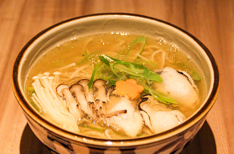 季節限定(10月~翌5月)『牡蠣のあんかけ蕎麦』には、大ぶりでぷりぷりの牡蠣が入っています。つゆには利尻昆布や花かつおをふんだんに使用。オリジナル醤油をブレンドした特製の合わせ出汁に生姜をプラス。牡蠣のうま味がつゆに溶け出し口いっぱいに広がります。熱々のあんがそばに絡みカラダが温まる一杯になっています。