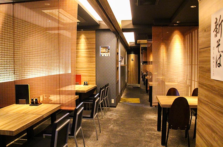 店自慢のそばは、そば粉からこだわり、北海道・福井・常陸など、その時期に最も香りの良いそば粉を仕入れています。毎朝、毎夕、おいしいそばを手打ちし、提供しています。