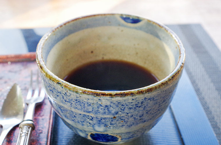 コーヒーは姫路市御立の「ほんまる珈琲」のオリジナルブレンド豆を使用。酸味控えめの柔らかな味わいで、手作りのスイーツとも相性抜群です。オーナーのこだわりの器を眺めて、目でも楽しんで。