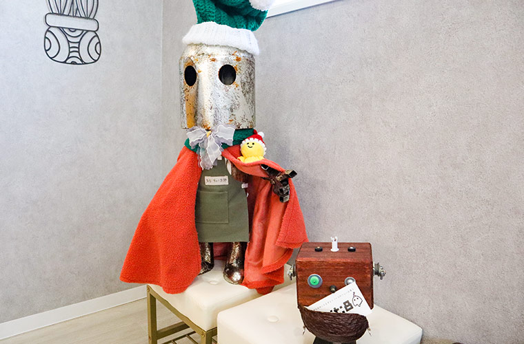 店内はグレーを基調に木目の温かみも感じられるスタイリッシュな雰囲気。所々に、レトロな家具が配され、店主のセンスと遊び心が光るインテリアも魅力です。