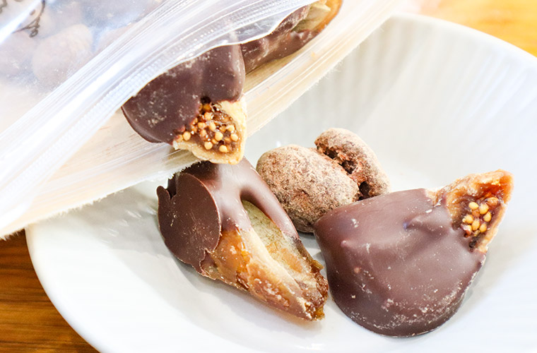 オーガニックドライ白イチジクは、ギュッと詰まった果実の甘みと、チョコレートのほろ苦さを濃厚に味わえる一品。使用しているチョコレートは、華やかな「アルアコワ72%」です。