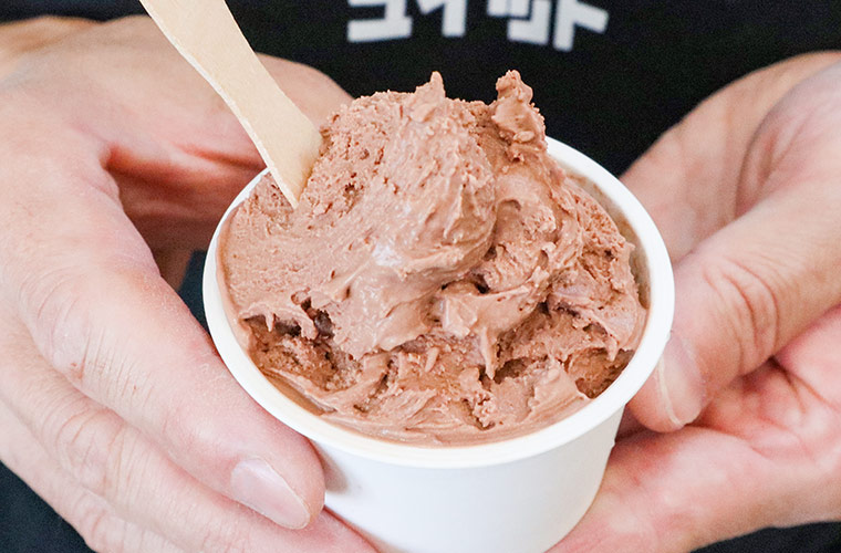 ジェラートは『シングル』(500円)、『ダブル』(600円)があり、プラス100円でチョイスできる「リッチショコラ」は、まるで生チョコを食べているかのようなねっとりとした濃厚さが自慢。1つ食べただけで、幸せ気分に浸れるような満足度の高いフレーバーです。
