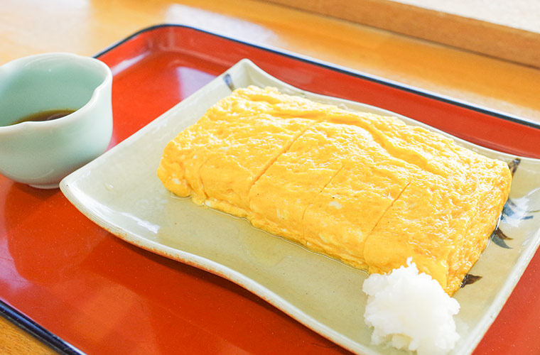 そばのほかに、一品メニューもスタンバイ。『そば屋の玉子焼き』は、網引町産の卵を使った、ふんわりジューシーな一品。しっかりと利いた甘辛い出汁の風味が後を引きます。