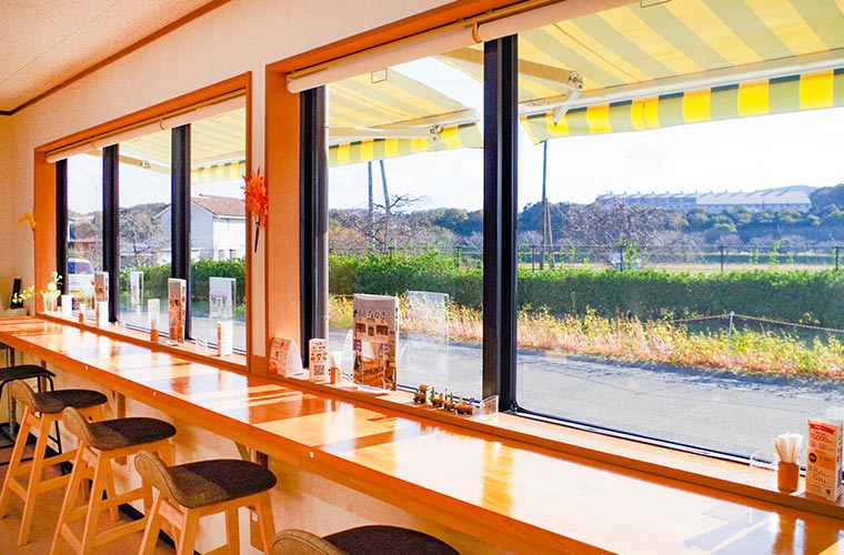 窓に向かって並ぶカウンター席に加え、テーブル席もあります。一人はもちろん、家族連れでもグループでも、気軽に立ち寄ってみて。