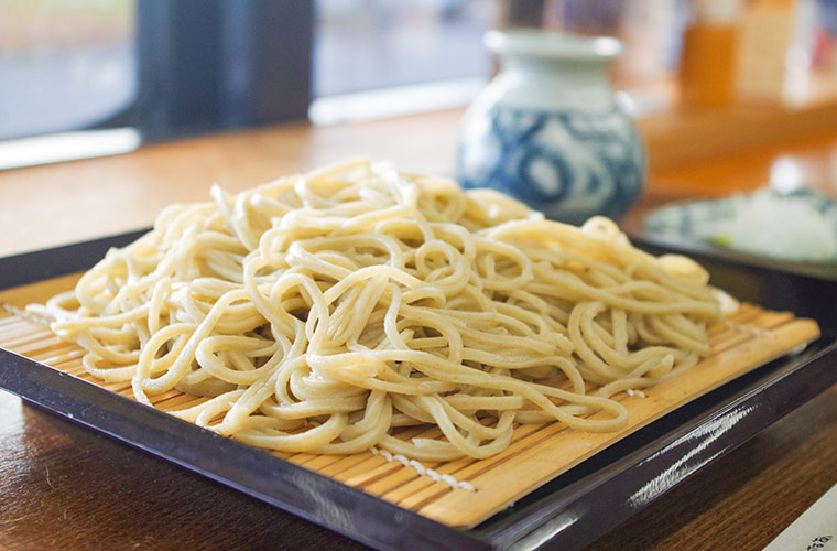 店主はそば打ち歴30年以上の達人。多数の弟子を育ててきたそば打ちの腕前に加え、福井県に製粉所を自ら立ち上げるなど、そば粉のプロフェッショナルでもあります。扱うそば粉は、店主自ら足を運び厳選した約10種類。季節に合わせて最良のものを選んでいて、取材日は、北海道産の新そばを味わうことができました。