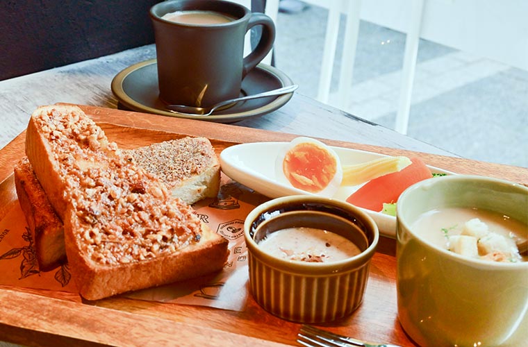 香ばしいトーストと温かい副菜の組み合わせは、朝のスタートにも観光の合間の軽食にもぴったり。