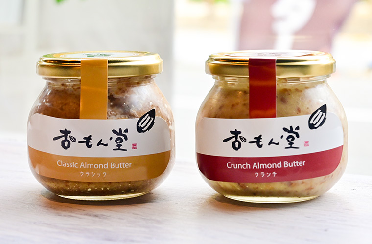 アーモンドバターは、なめらかな口当たりの『クラシック』とザクザク食感の『クランチ』の2種を展開。どちらもローストアーモンドを店内で挽(ひ)いていて、アーモンドを惜しみなく使用しているのも魅力の一つ。香ばしさ・優しい甘さ・コクのバランスが絶妙なオリジナルの味わいです。