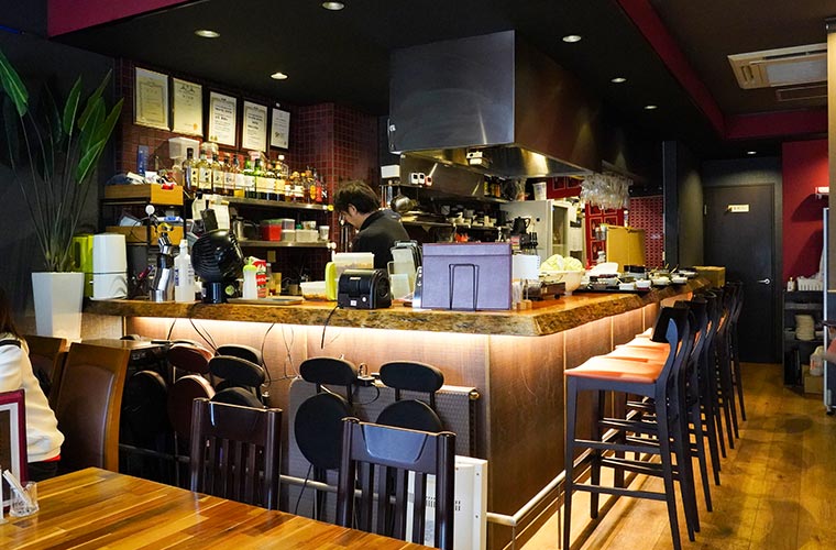 店内は、従来の鉄板焼き店のイメージとは異なり、デートにも使いたくなるようなシックで大人な空間。30~40代のお客さんを中心に、カップルや女子会を楽しむグループでにぎわいます。