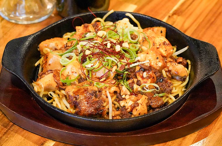 焼きそばと麻婆豆腐という意表を突く組み合わせで、最初の一口から最後の一口まで驚きが止まらない『麻婆焼きそば』。豆板醤などで辛さとうま味を引き出した自家製あんが、麺にも豆腐にもしっかり絡む、甘辛い味わいの一品です。豆腐の食感も楽しく、一度食べるとやみつきになること間違いなし。