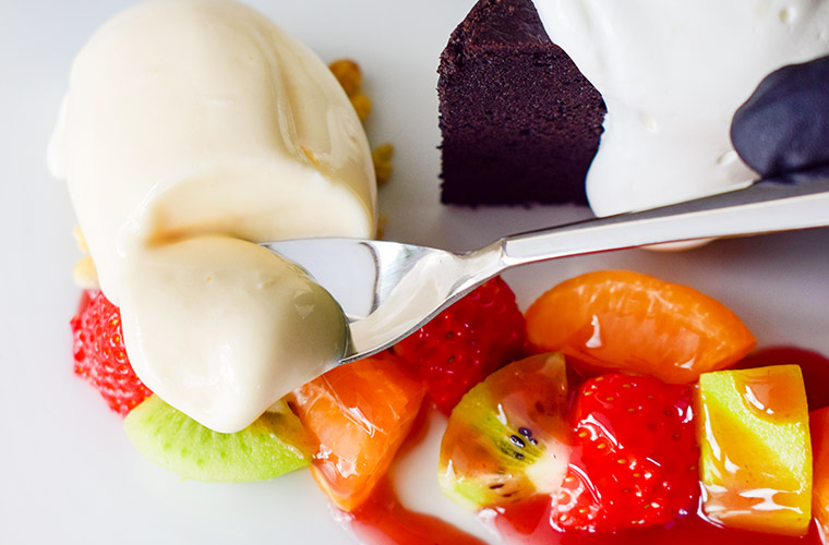 添えられたバニラ香るアイスクリームは、一度冷凍した液体をブレンダーで粉砕する製法を採用。絹のようになめらかで、思わず言葉を失うほどのまろやかな口当たりです。