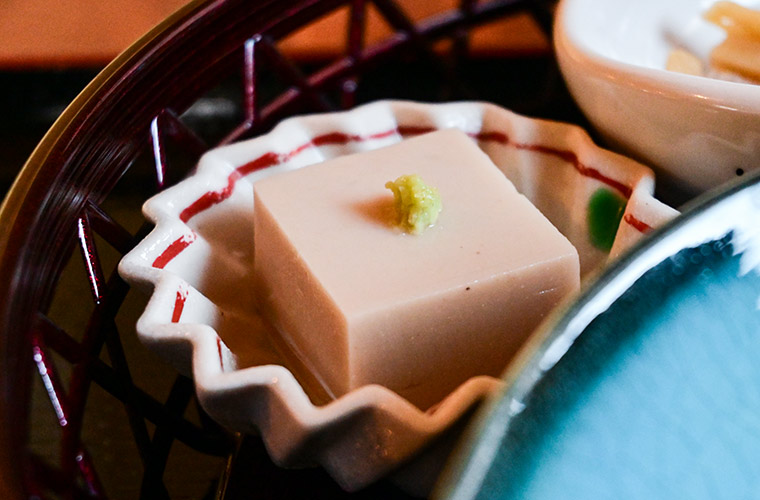 この日のメインは、柚子胡椒餡をたっぷりまとった白身魚と胡麻豆腐の天ぷら。爽やかなユズの皮と柚子胡椒特有の辛みが味に奥行きを与え、淡白な白身魚も印象的な一品に。普段はビール派という人も、日本酒が恋しくなるはずです。