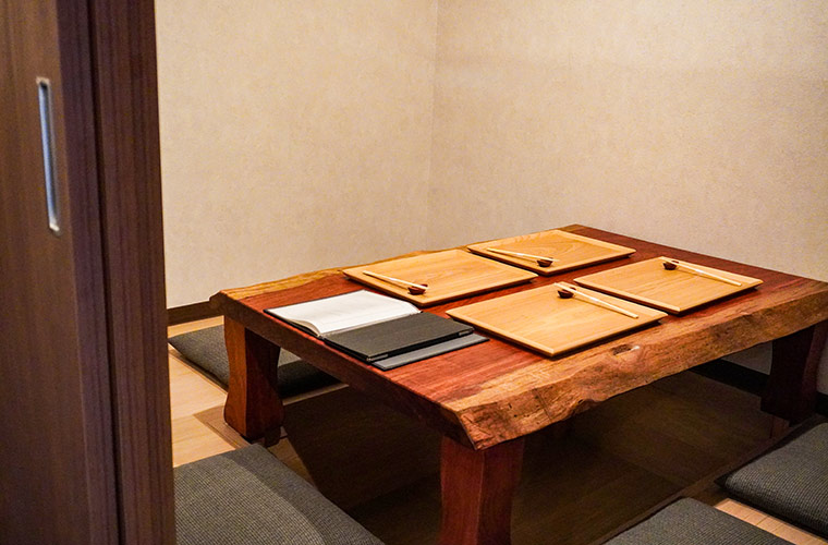 奥にある座敷は、大人が4〜5人ほど利用できるこぢんまりとした空間。ほどよい広さが居心地よく、おいしい料理を囲めば、会話も自然と弾みそうです。赤ちゃん連れのファミリーにもうれしいですね。