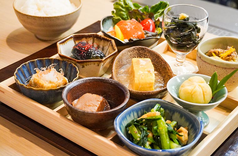 中央でキラキラと輝く「鯛のほぐし身あんかけだし巻き」以外は、どれも野菜の旬を大切にした季節の一品。そのため、訪れるたびに新しい料理や味と出合えるのも、このランチの魅力の一つです。