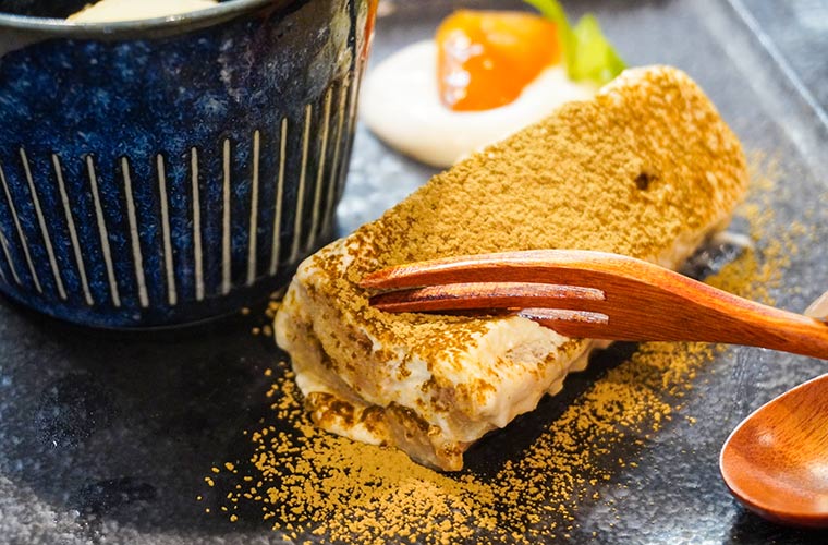 ランチには、プラス600円で『デザートセット』を付けることもできるので、お腹と時間に余裕があるときはぜひ追加でオーダーを。取材日は「加賀ほうじ茶ティラミス」「バニラアイス」「梅クリームと干し柿」が登場しました。ドリンク付きなので、食後のひとときをゆっくり過ごせるのもうれしいポイントです。