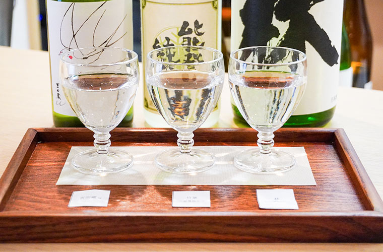 どの銘柄にするか迷ったときは、3種類の日本酒を飲み比べできる『飲み比べセット』がおすすめ。約60mlずつ、ちょっとずつ楽しめるので、日本酒を普段飲み慣れていない人にもぴったり♪それでも迷ったときは、店主に雑談するような感覚で気軽に相談してみて。
