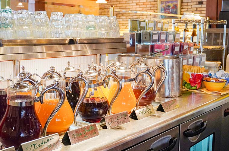 16種類の紅茶をはじめ、コーヒーやソフトドリンクなど全20種類のドリンクが飲み放題。食前の一杯はもちろん、食後のティータイムも優雅に楽しめます。