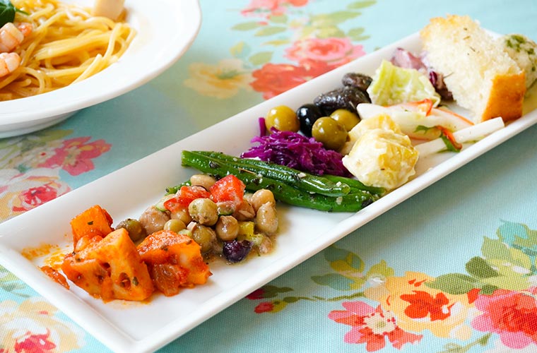 前菜&サラダ食べ放題にスイーツまで楽しめる「キャナリィ・ロウ」。バースデーサービス(※要予約)などうれしい特典もあるので、家族のお祝いにもぜひ訪れてみて♪