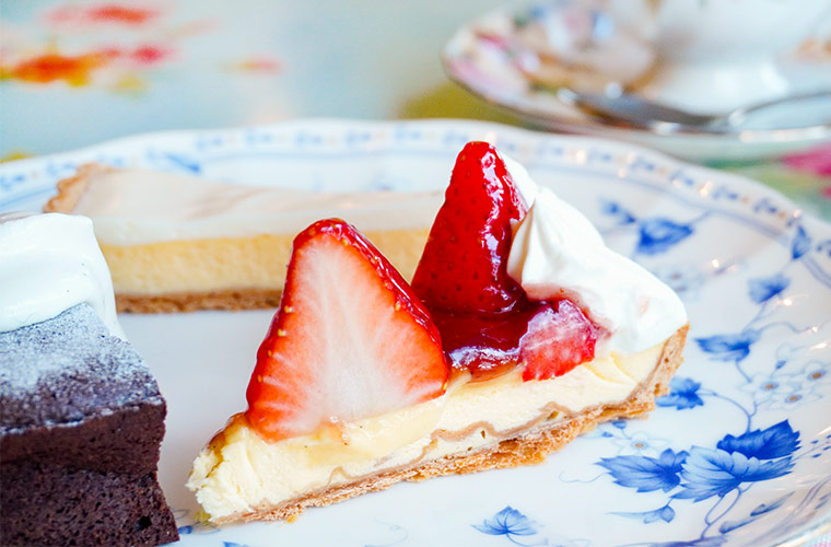 取材日は、冬季(12~5月初旬ごろ)限定の「イチゴのタルト」も登場。大粒の国産イチゴが主役のタルトは、カスタードと生クリームのハーモニーに、イチゴジャムの甘酸っぱさがアクセント。華やかな香りとみずみずしさが口いっぱいに広がります。