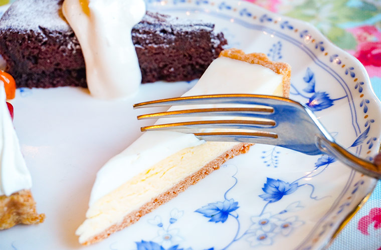 「フロマージュ」は、ベイクドチーズケーキとレアチーズケーキの2層仕立て。クリームチーズのコクがありながら後口はサッパリとしていて、人気もうなづける一品です。