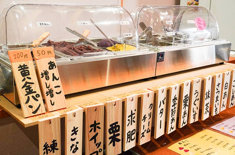 同店の醍醐味は、なんといっても、あんことトッピングを自由に組み合わせて“自分好みの揚げあんぱん”を手軽に作れること。神戸の老舗「内藤(ないとう)製餡」から仕入れるバラエティー豊かなあんこは、定番6種類に加え、季節限定フレーバーも1~2種類ほどスタンバイしています。さらに、トッピングもバターやクリームチーズ、練乳など常時8種類がそろい、組み合わせを考える時間も楽しみの一つです。