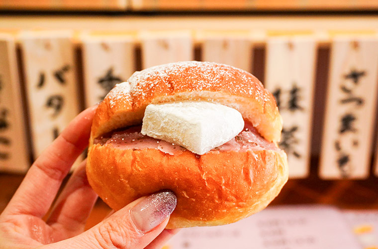 季節ごとにラインアップが変わる『季節のあんこ』を選べば、揚げあんぱんで四季を楽しめるのも同店ならでは。取材日は、春を先取りした「さくらあん」が登場。華やかな桜の香りがふわりと鼻から抜ける優しい味わいのあんこと、もっちりとした『求肥』の組み合わせは、まさに桜餅を思わせます。