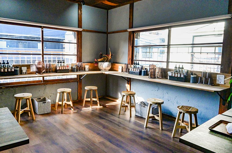2階は一転、まるでカフェのような空間に。窓際のカウンター席では、景色を眺めながらゆったりと過ごせます。女性一人でもふらりと立ち寄りやすい心地よさが魅力です。