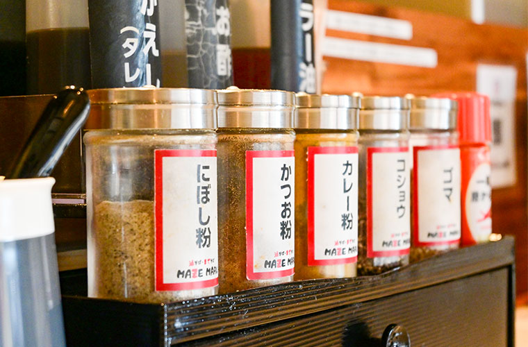丸十時代から変わらないのは、現状に満足することのないオーナーの飽くなき探求心と、妥協なき姿勢。スープに納得できない日は店を開けないこともあるという、その徹底ぶりからも情熱の深さがうかがえます。店主はその一杯への熱意に共感し、同じ思いのもと、この店を立ち上げたそう。15年越しの思いを込めて誕生した「油そば・まぜそばMAZEMARU」。これからもおいしさを追求し続けるその一杯から、目が離せません。