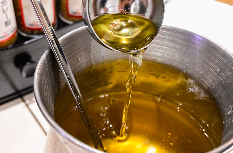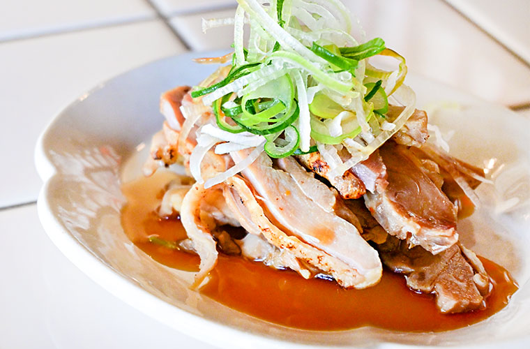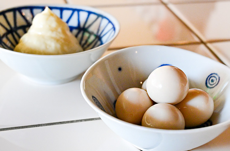 かえしには、若鶏から丁寧に抽出した鶏油(チーユ)と、たつの市の老舗「末廣醤油」の生醤油を使用。オーナー自らが「末廣醤油」に足を運び、常に新しい情報を取り入れながら醤油への知識を磨いています。地元食材も積極的に採用し、素材一つひとつにこだわり抜いています。