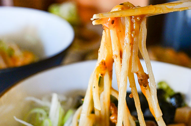 店主が掲げるのは、「妥協は一切しない」という強い思い。麺には、北海道産小麦「きたほなみ」と「ゆめちから」をブレンド。さらに、ミネラルを豊富に含む内モンゴル産のかん水を使用することで、もっちりとした弾力とコシを実現しています。納得のいく食感を追求し、麺は毎日店内の製麺機で自家製。小麦本来の風味をしっかりと感じられるよう仕上げられています。