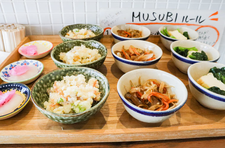 そのほか、『うどん』や『おでん』といったお腹を満たせるメニューから、『ひねポン』『パリパリピーマン』などのおつまみまで充実している「MUSUBI」。地元産のお米を最大限に生かした握りたてのおむすびや、手作りの温かみを感じるお弁当やおかずなど、ほっと一息つきたいときに、ふらりと立ち寄ってみてはいかが?