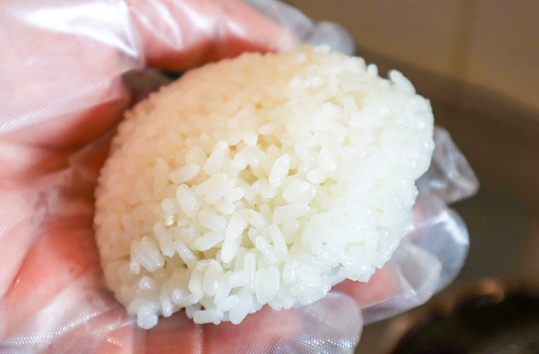 おむすびに使用するのは、加古川市東神吉町で作られる「神喜米(かんきまい)」です。ふっくらと炊き上がり、噛むほどにほんのり甘みが広がるご飯は冷めてもおいしいのが特長で、炊き立てのおいしさは格別!スタッフから「お客さんにもこのおいしさを感じてもらいたい!」という声があがり、2025年2月からは注文を受けてからおむすびを握るスタイルに変更。ふんわりとおむすびの形を整えることで、口の中でホロホロと一粒ずつほどける食感を実現しています。