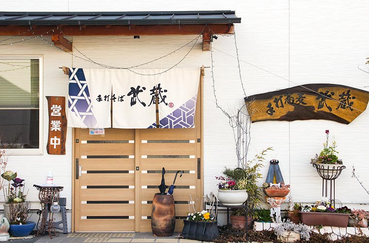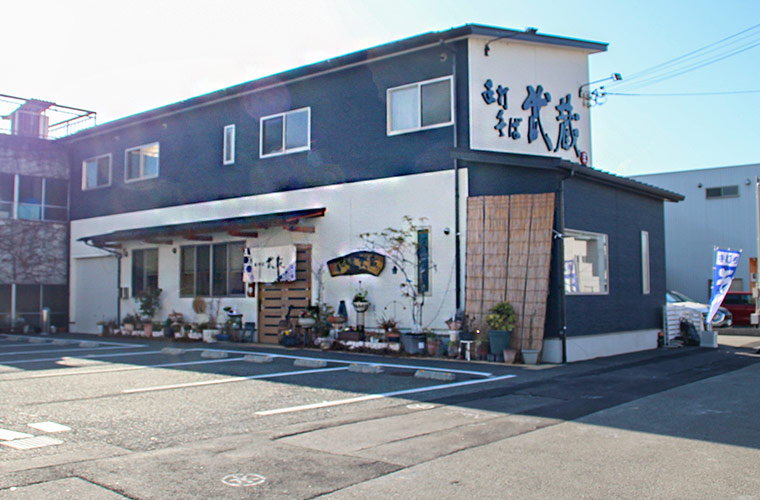 JR京口駅、東姫路駅から徒歩10分ほど。国道2号線沿い市川橋通りに静かに暖簾(のれん)を揚げる一軒のそば店「手打そば 武蔵(むさし)」があります。